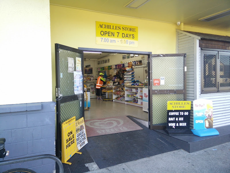 Achilles Store at 326 Ocean Road is a well-stocked convenience store open seven days from 7am to 9pm. Carries groceries, fresh fruit and vegetables, frozen foods, gluten-free products, cold drinks, confectionery, ice cream, beer and wine, as well as fishing supplies including bait, tackle, and salt ice, plus BBQ essentials like wood, kindling, and charcoal.